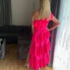 Odkryj wyjątkową, długą sukienkę w stylu hiszpańskim, ozdobioną eleganckimi falbankami. Ta sukienka wyróżnia się zmysłowym rozcięciem, które subtelnie odsłania nogę, dodając jej niezwykłego uroku. Uszyta z wysokiej jakości materiału, zapewnia trwałość oraz komfort noszenia. Jest to produkt polski, dostępny w intensywnym kolorze fuksji, który przyciąga uwagę i podkreśla kobiecość. Idealna na specjalne okazje i wieczorne wyjścia.