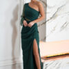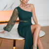 Odkryj wyrafinowaną elegancję w wyjątkowej sukni o asymetrycznym kroju, z subtelnym cekinowym rękawem na jedno ramie, dostępną w głębokim odcieniu butelkowej zieleni. Ta ekskluzywna kreacja łączy w sobie nowoczesny design z subtelnością detali. Wykonana z najwyższej jakości materiałów, zapewnia nie tylko olśniewający wygląd, ale również wygodę i swobodę ruchów. Ten niepowtarzalny strój stanowi idealny wybór na wyjątkowe okazje, podkreślając indywidualny styl i elegancję każdej kobiety