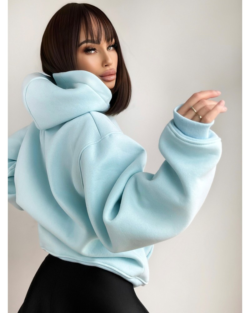 Nasza bluza damska o kroju oversize to idealne połączenie wygody i elegancji, teraz dostępna w przyjemnym odcieniu błękitu. Wykonana z najwyższej jakości materiału, zapewniająca nie tylko komfort noszenia, ale także trwałość. Dolna część bluzy oraz rękawy zostały wykończone ściągaczem, nadając im dodatkowej wyrazistości.