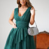 - Butelkowa Zielni – Elegancja w Kolorze Natury: Odcień butelkowej zieleni nadaje kreacji niepowtarzalny charakter, podkreślając jednocześnie jej przywiązanie do natury i zmysłowości.
