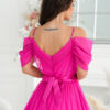 Szalenie Stylowa: Hiszpańska Sukienka w Odcieniu Fuksji z Tiulowymi Rękawami i Satynowym Paskiem