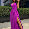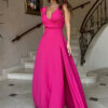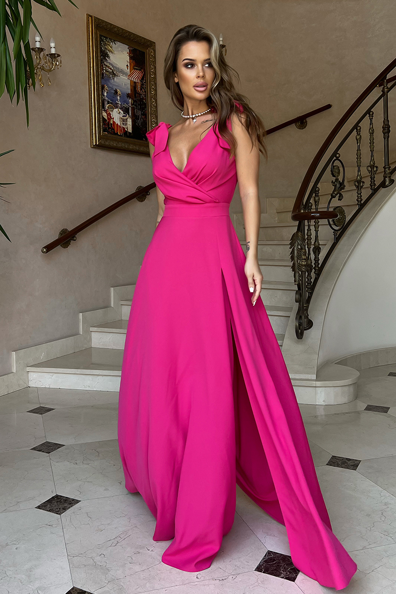 Długa suknia wiązana na ramionach w piękne kokardy kolor fuksja. Model 200-078