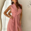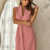 Elegancka sukienka ze stójką i dekoltem w kolorze brudnego różu. Model 200-062
