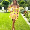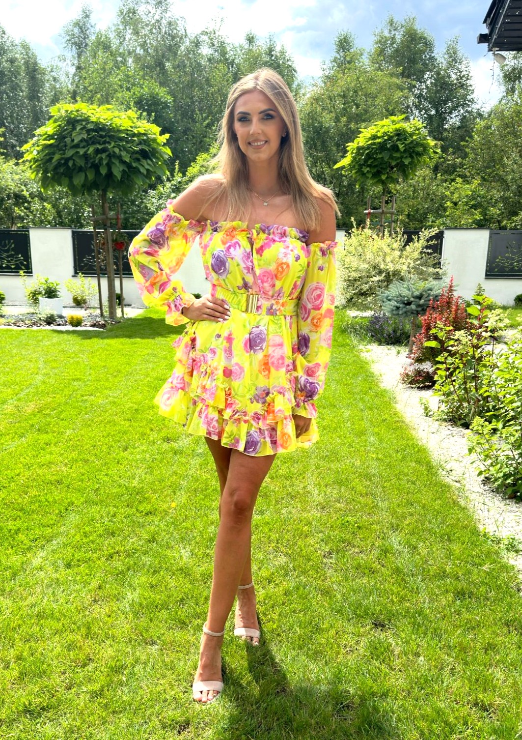 - Ta przepiękna krótka sukienka hiszpanka z falbankami jest wykonana z niezwykle lekkiego i delikatnego materiału, który zapewnia komfort noszenia. Charakteryzuje się modnym printem i urzekającą kolorystyką, które nadają jej wyjątkowego uroku. Materiał, z którego została uszyta, wyróżnia się wysoką jakością, co gwarantuje trwałość i elegancki wygląd.