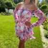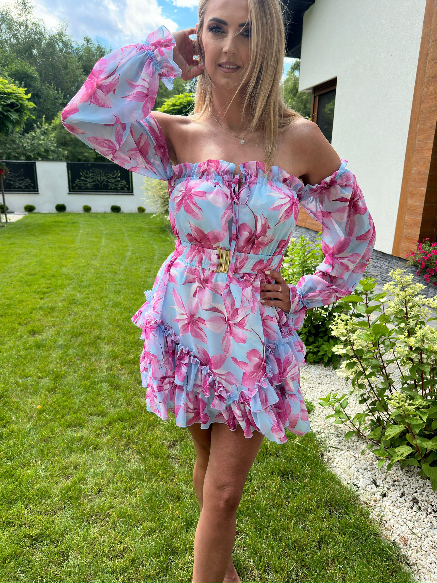 Odkryj naszą uroczą sukienkę z falbanami, wykonaną z lekkiego i delikatnego materiału, zapewniającego niezrównany komfort noszenia. Wyjątkowy wzór i piękna kolorystyka nadają jej niepowtarzalny urok, idealny na każdą okazję. Materiał wysokiej jakości zapewnia trwałość i elegancki wygląd, czyniąc ją doskonałym wyborem na każdą porę roku.