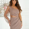 - Cekinowy Rękaw: Jednostronny cekinowy rękaw stanowi główny akcent stylizacji, przyciągając wzrok i nadając sukience wyjątkowy charakter.