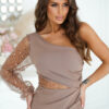 - Asymetryczna Góra: Sukienka posiada piękną, asymetryczną górę z cekinową wstawką, która dodaje jej blasku i elegancji.