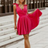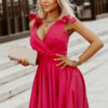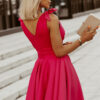 Krótka sukienka z kokardkami w kolorze malinowym. Model 200-071