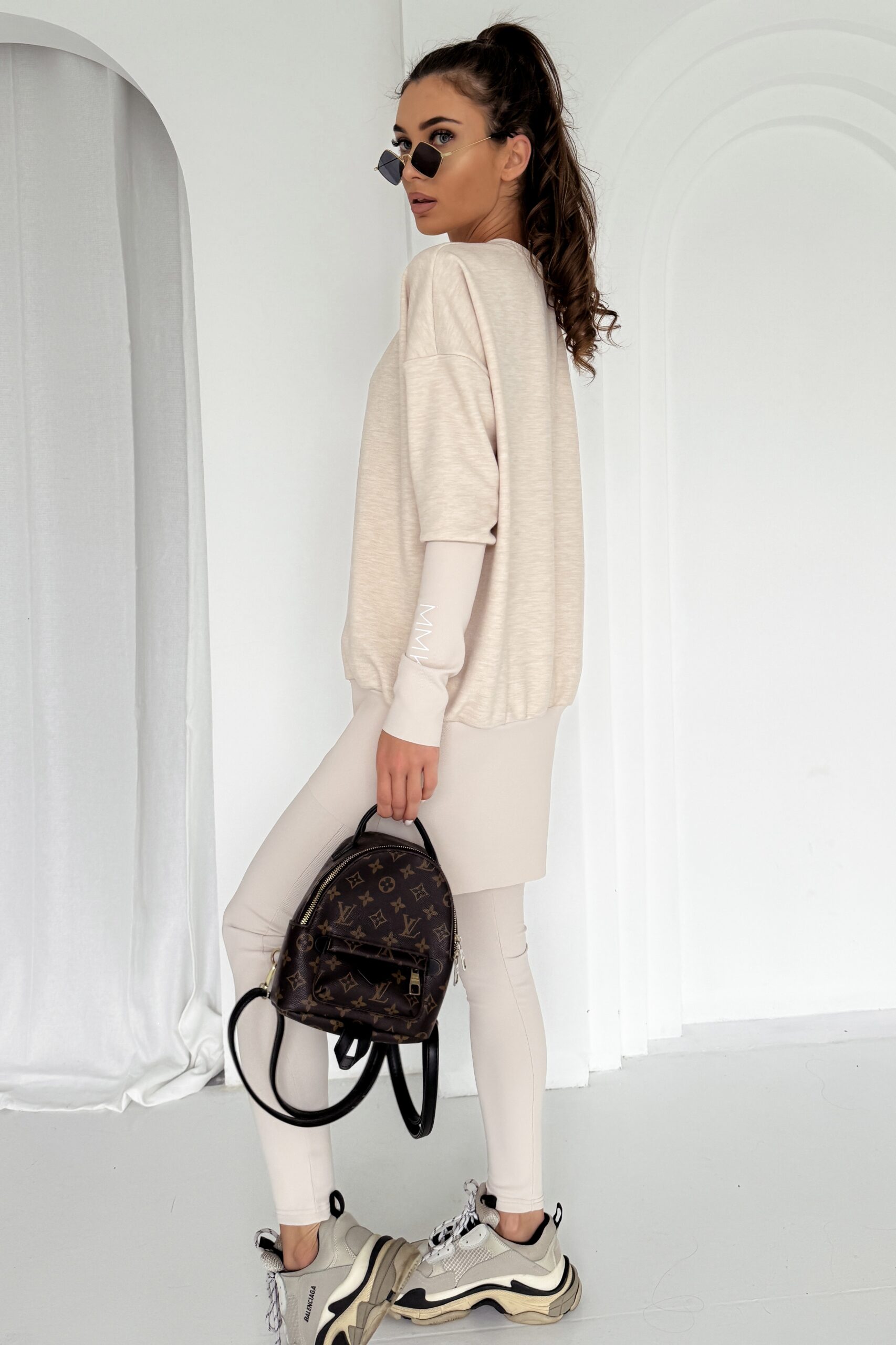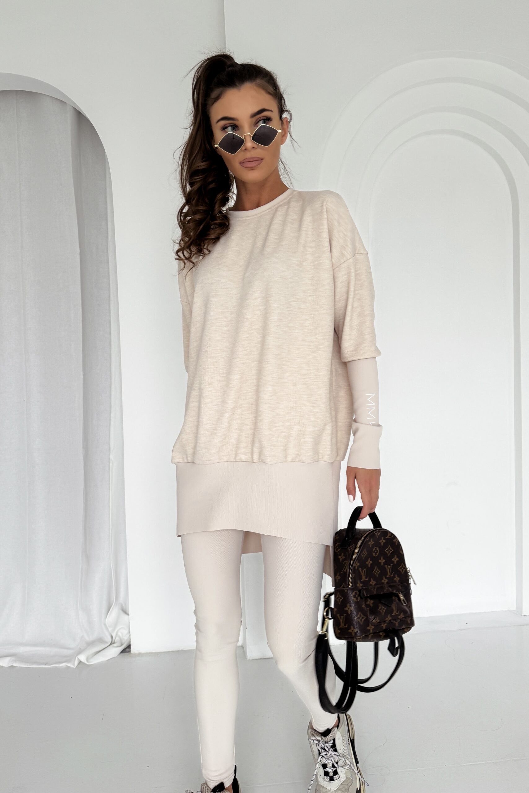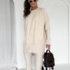 Nasza tunika w delikatnym odcieniu ecru to wyraz niezwykłej kobiecości w oversizowym fasonie, który umożliwia kreowanie zarówno sportowych, jak i eleganckich stylizacji. To uniwersalne rozwiązanie dla kobiet ceniących sobie swobodę ruchu bez utraty subtelnego wdzięku.