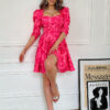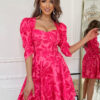 Rozkloszowana sukienka z bufiastymi rękawami. Model 200-038