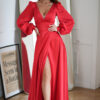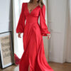 Sukienka Satynowa z Lejącymi Rękawami i Dekoltem w Serek: Elegancja i Styl