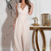 Zanurz się w świat luksusu i stylu z naszym eleganckim kombinezonem uszytym ze zwiewnej tkaniny. Wyjątkowy design tego modelu zachwyci każdą kobietę poszukującą połączenia wygody i elegancji. Regulowany dekolt, umożliwiający dostosowanie do własnych upodobań dzięki wiązaniom na ramionach, dodaje tej kreacji niepowtarzalnego charakteru.