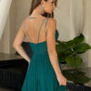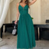 Sukienka 7/8 w kolorze butelkowej zieleni z koronkową górą i tiulowym dołem. Model 200-076
