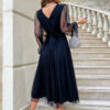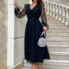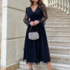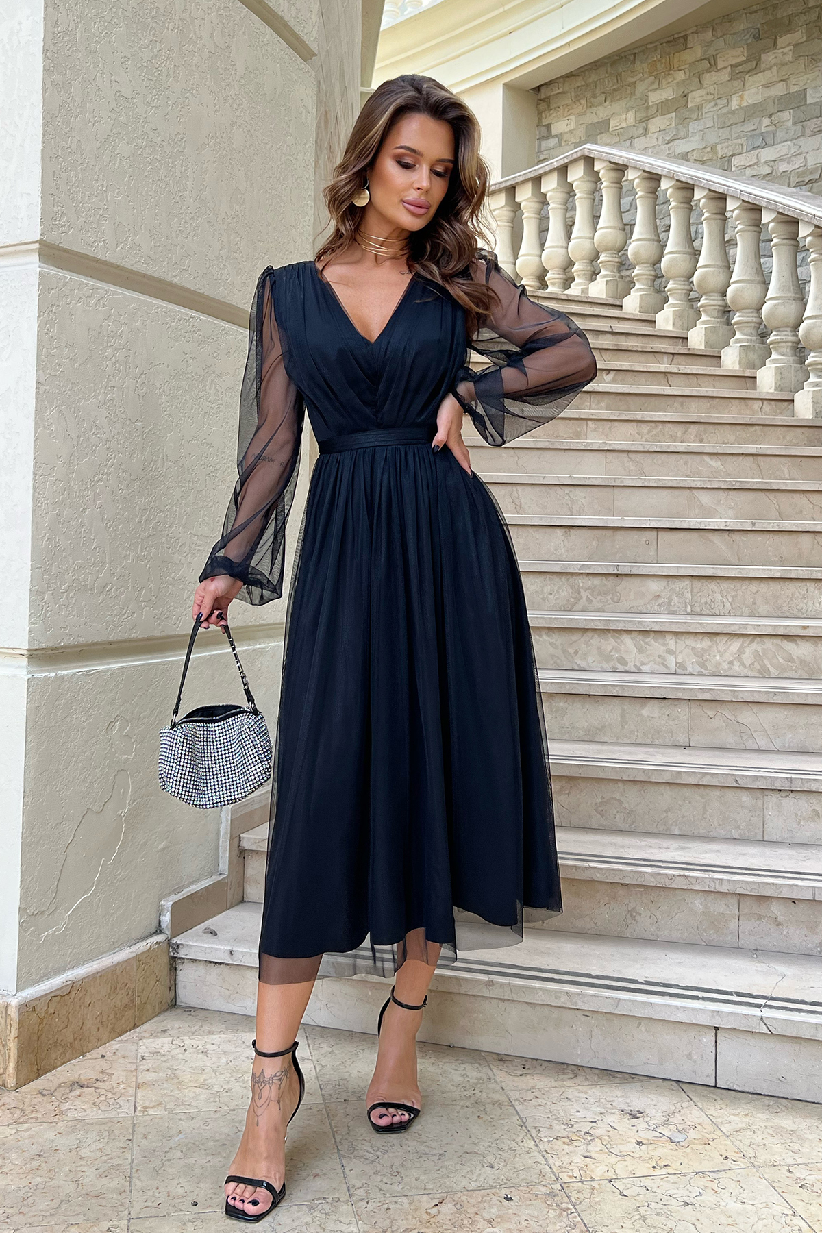 Sukienka midi z czarną rozkloszowaną spódnicą i brokatową siatką. Model 200-0107