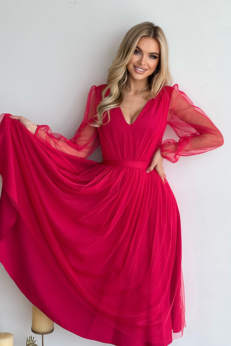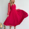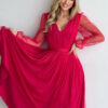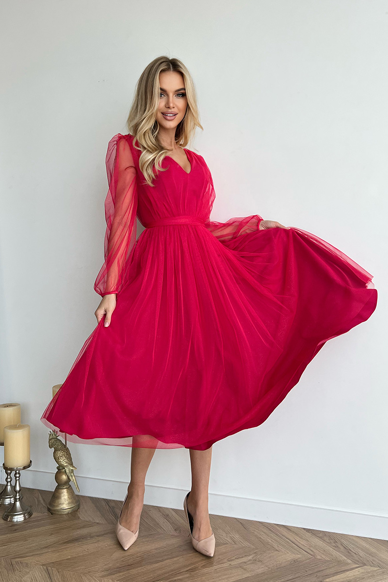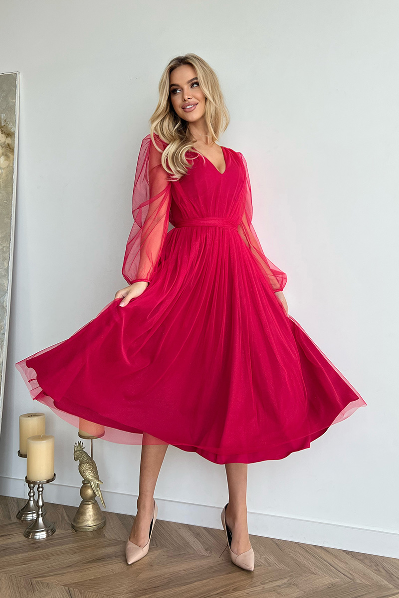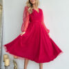 Sukienka midi z rozkloszowaną spódnicą w kolorze fuksji. Model 200-0128