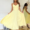Sukienka midi z rozkloszowanym lekko dołem i idealnie dopasowana w talii w kolorze żółtym. Model 200-063