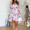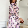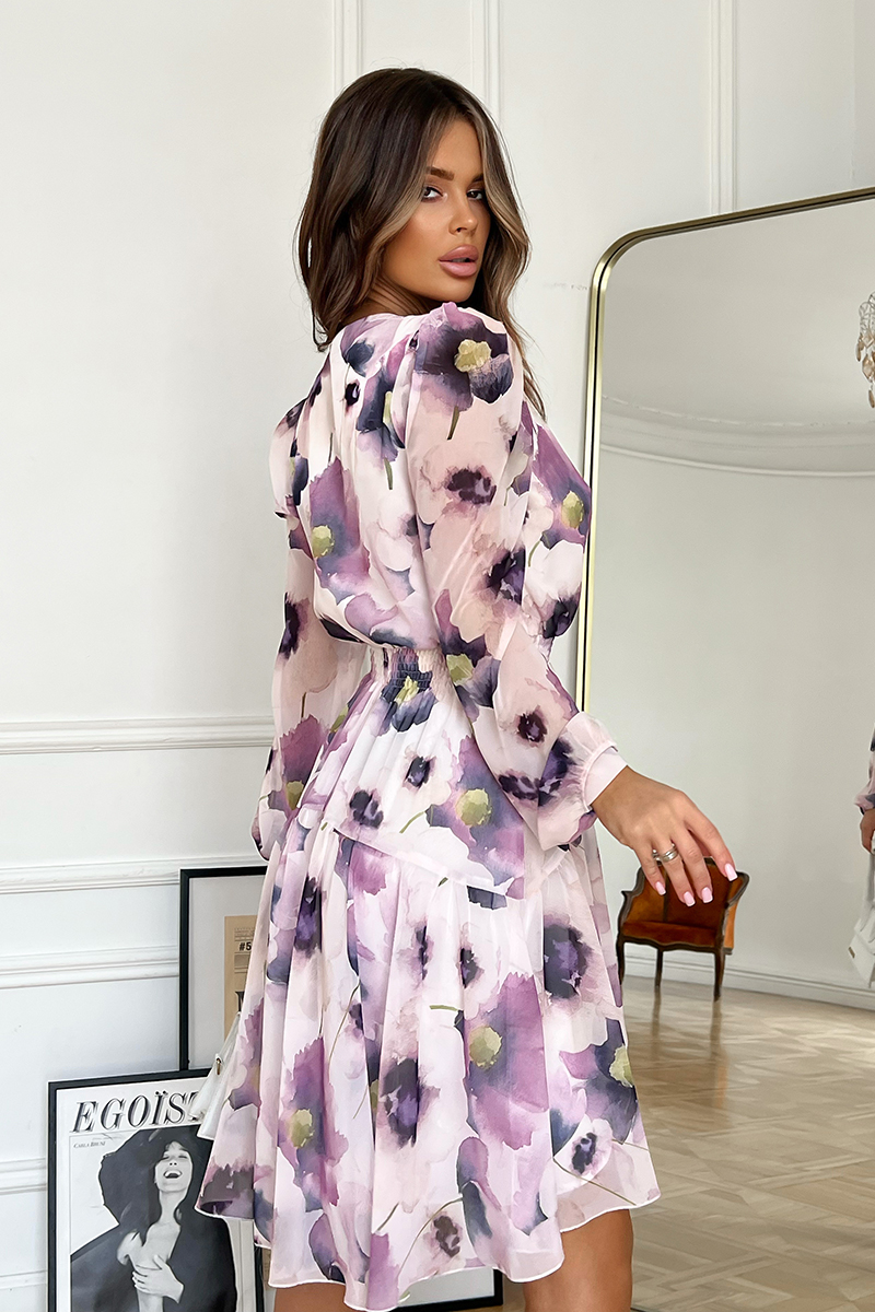Szyfonowa sukienka w liliowe kwiaty. Model 200-033