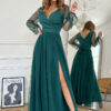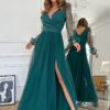 Ta wytworna sukienka w odcieniu butelkowej zieleni to esencja elegancji i subtelności w jednym. Jej wyjątkowy fason i bogata kolorystyka nadają niezwykły wyraz każdej stylizacji. Delikatne wykończenie sprawia, że jest ona niezwykle uniwersalna, pasując zarówno do wieczorowych przyjęć, jak i bardziej codziennych okazji.